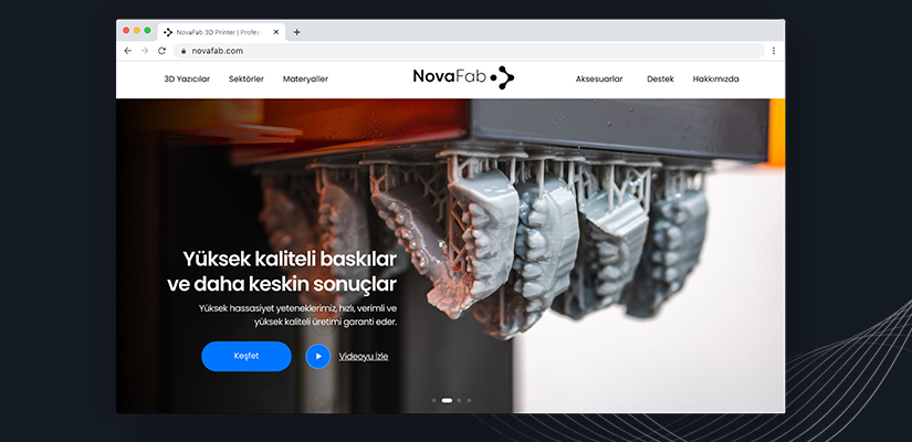 2013 yılında İstanbul’da kurulan, yüksek hassasiyetli 3D yazıcılar üreten teknoloji şirketi NovaFab’ın kurumsal web sitesi tasarımı tamamlandı.